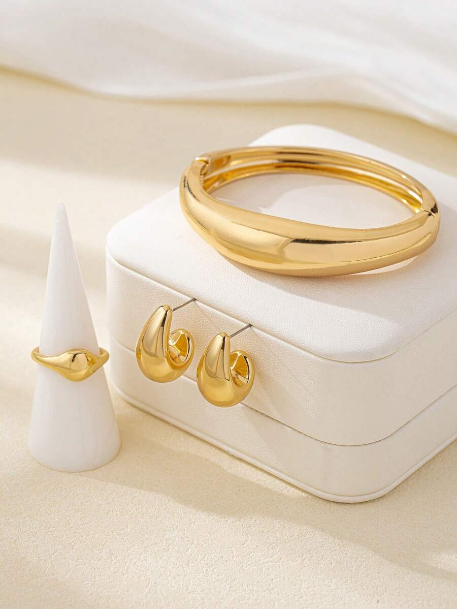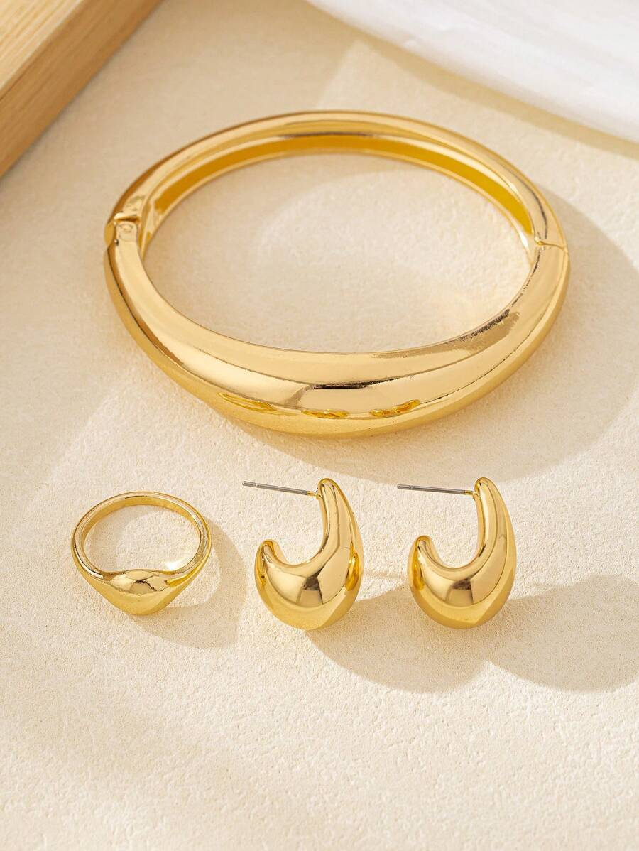 طقم ذهبي 3 قطع, طقم فضي 3 قطع, طقم مكون من 3 قطع باللون الأسود اللامع |