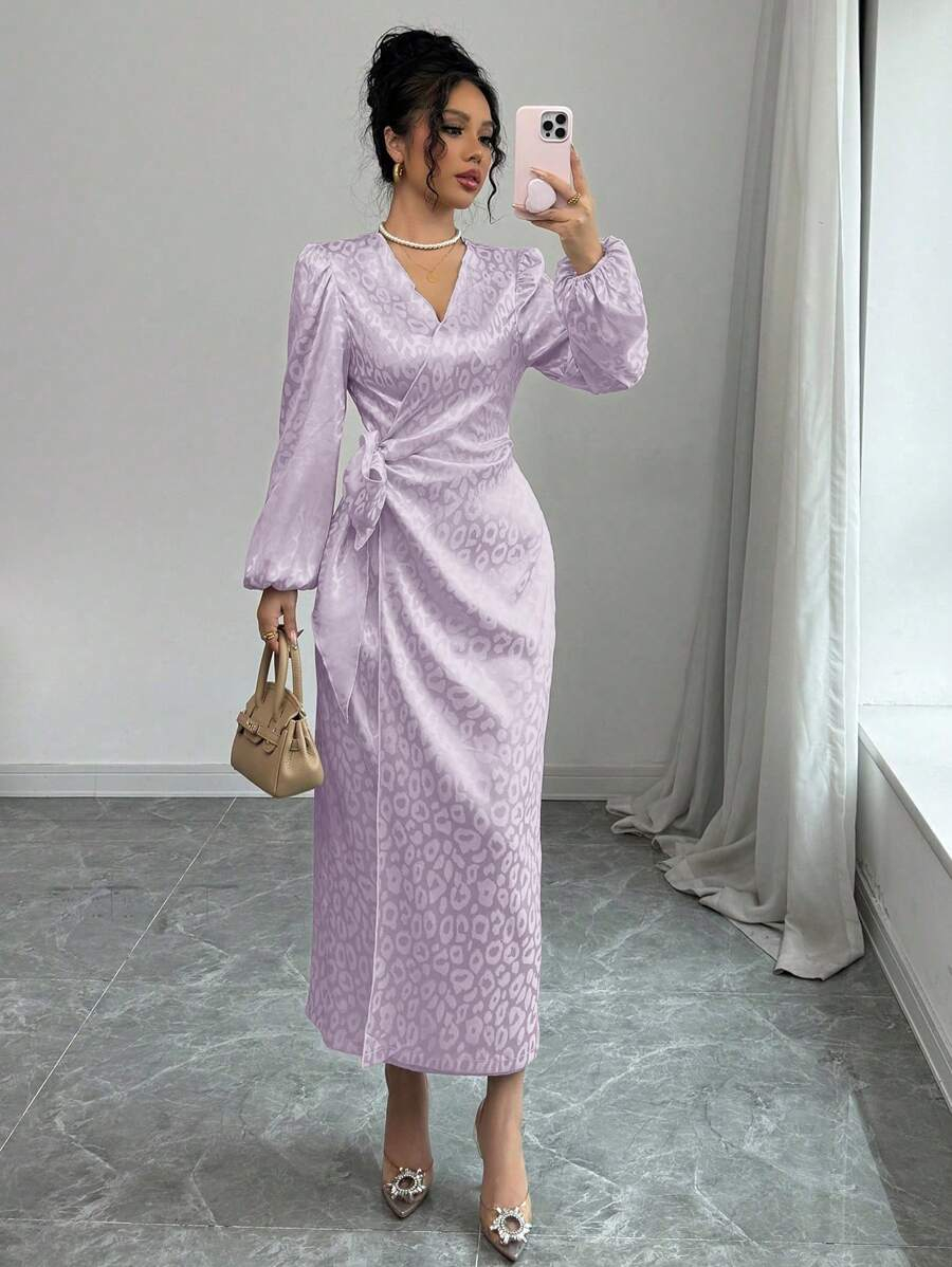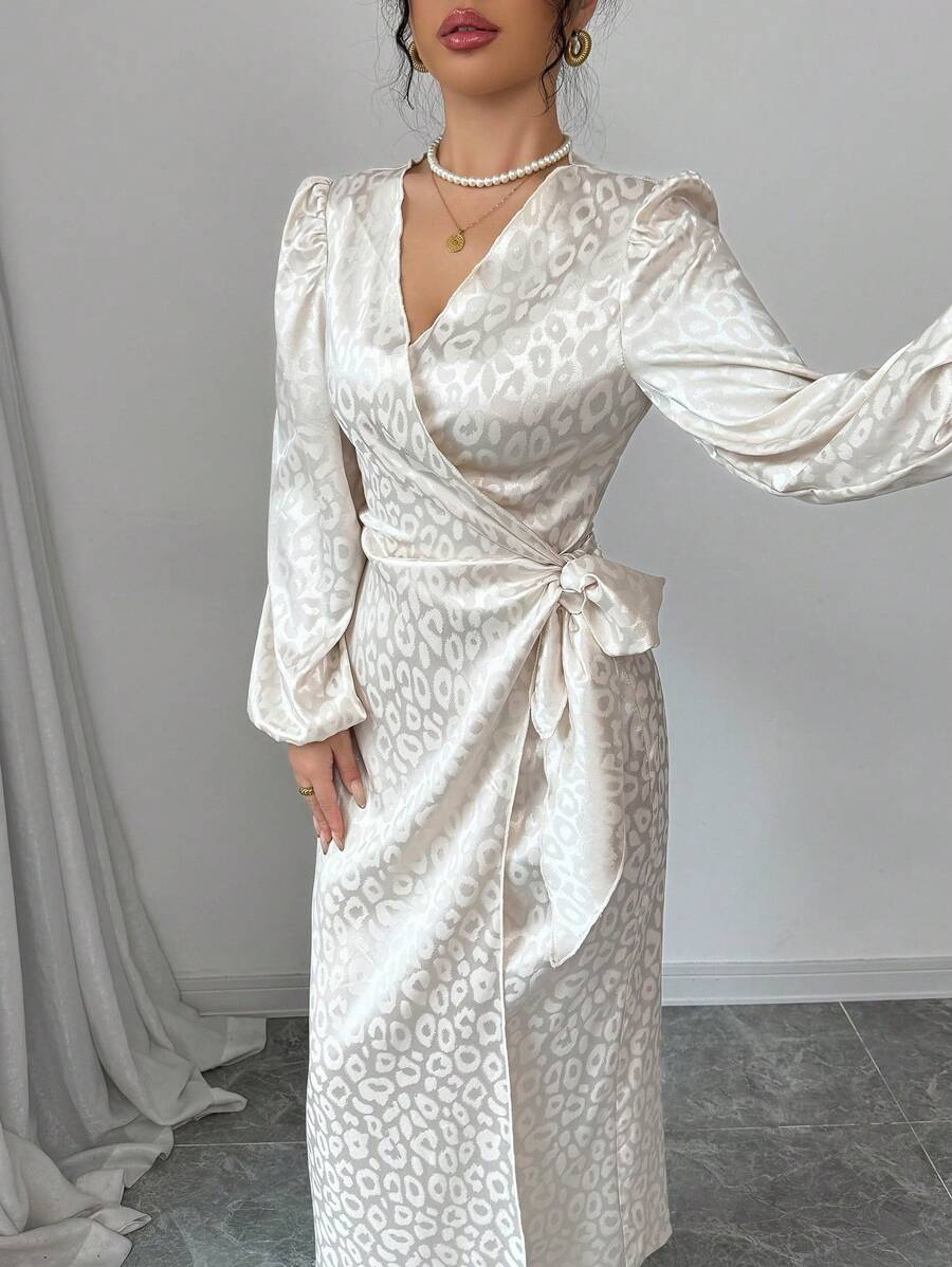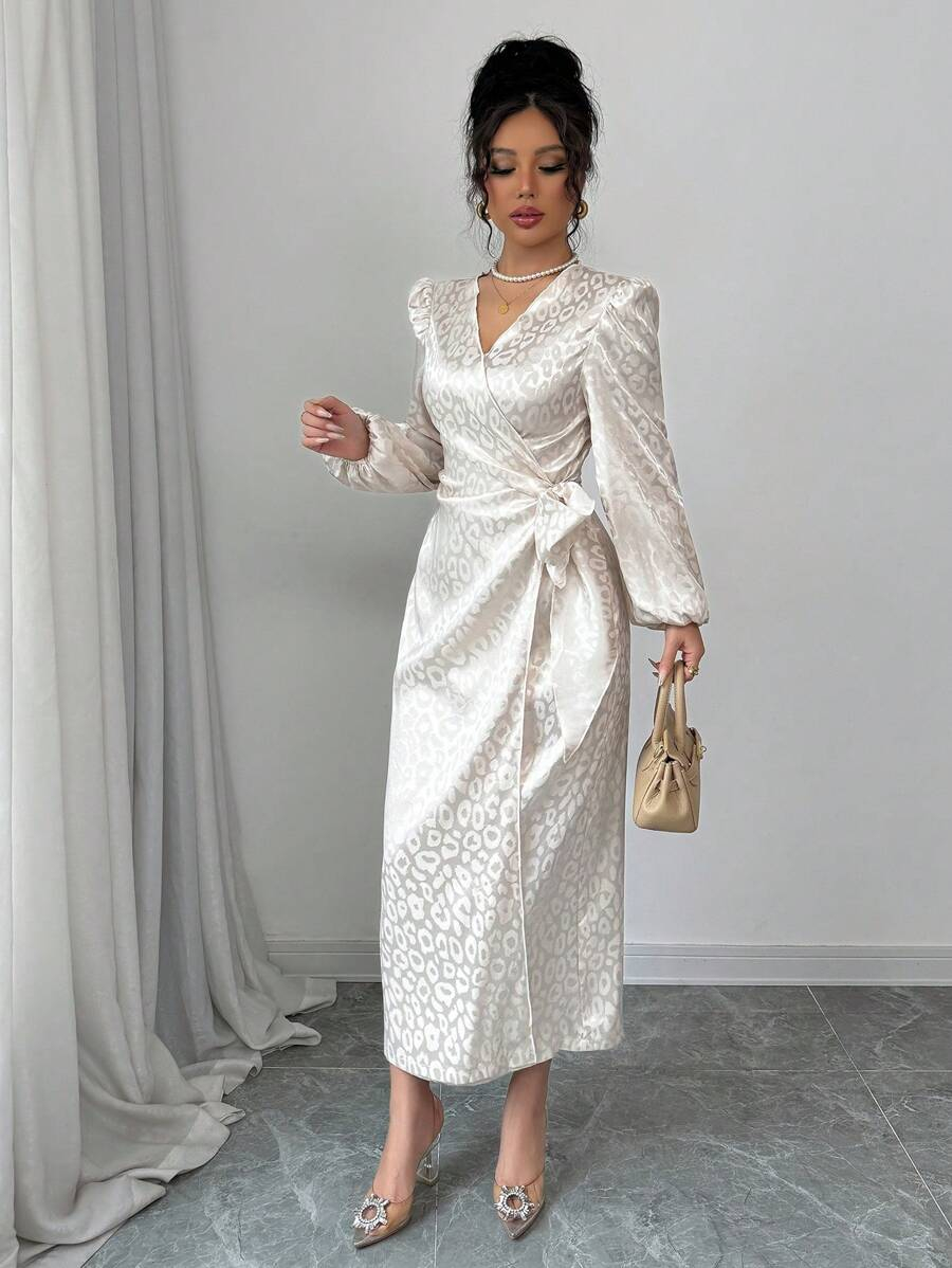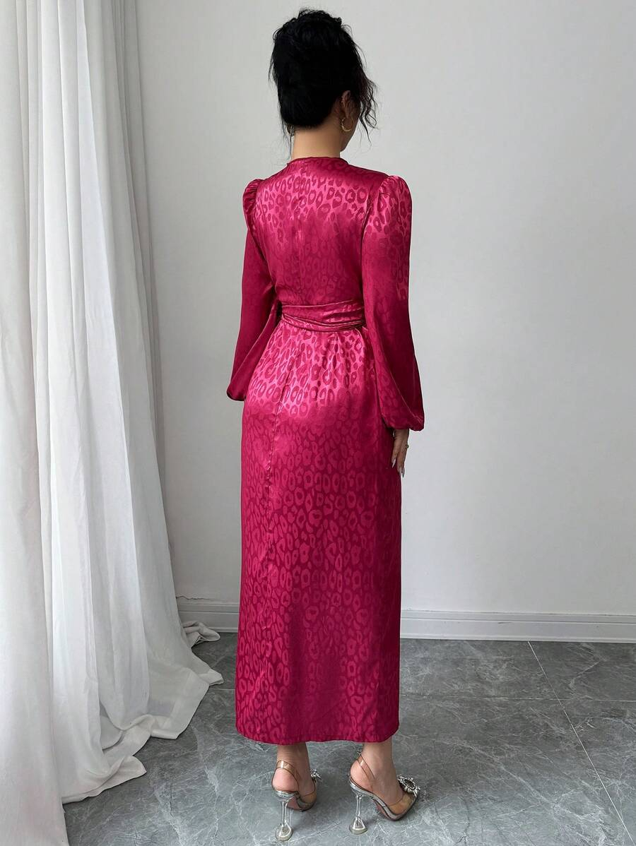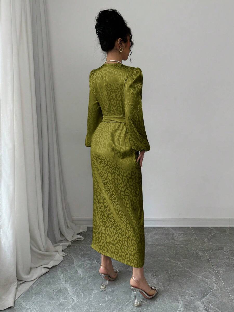 Rafferiza فستان نسائي ضيق الجسم ذو كشكشة في الأكمام ذو فتحة في الرقبة، بطبعة نمر