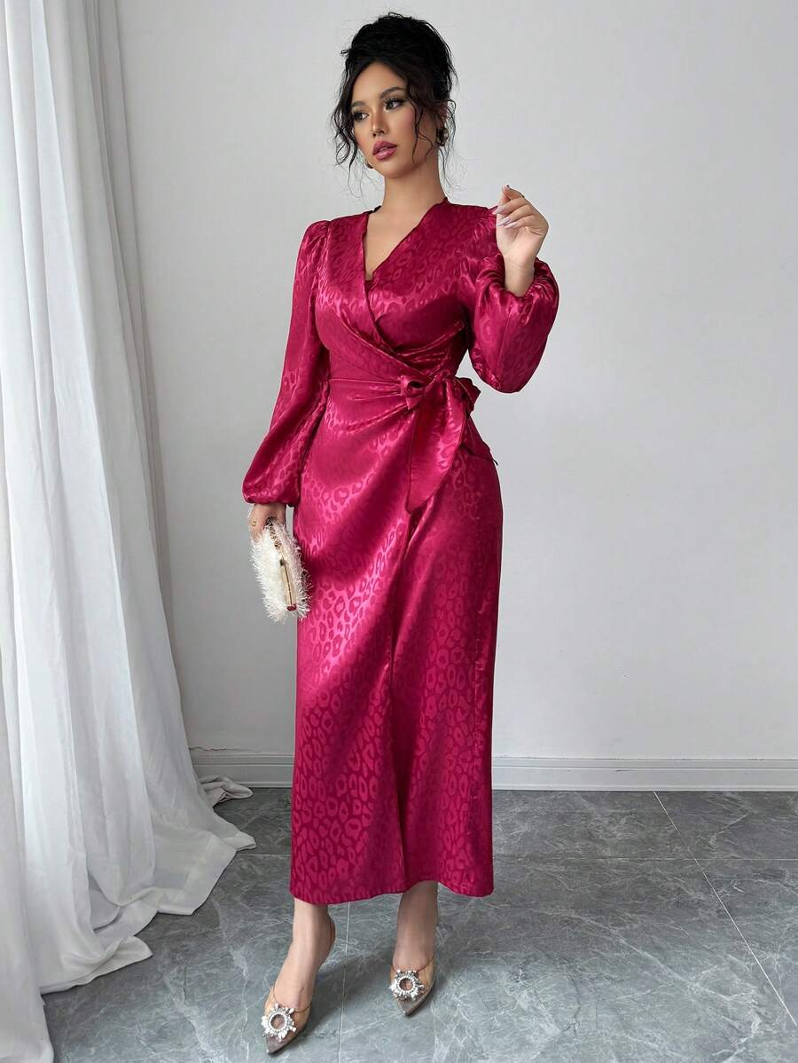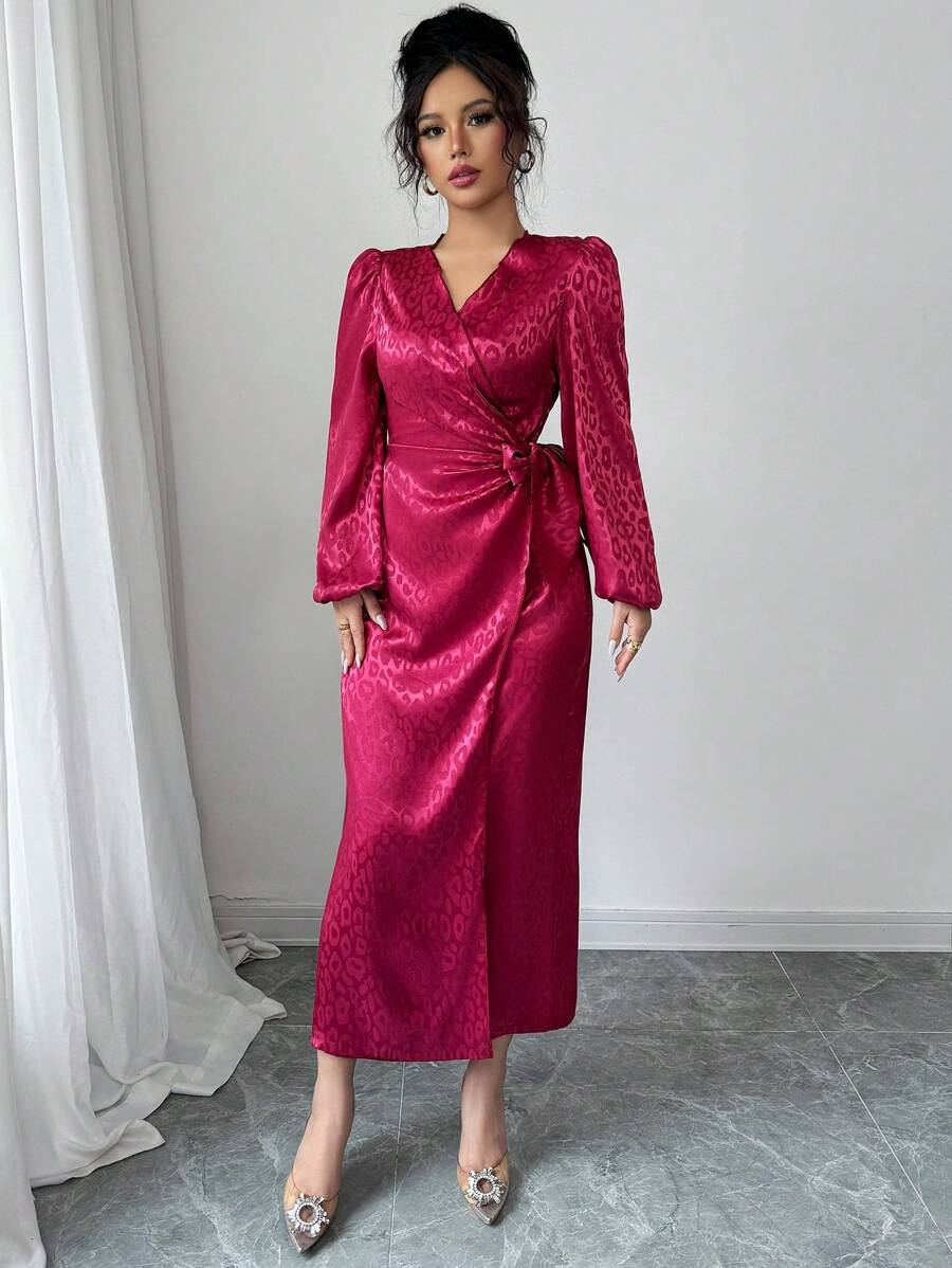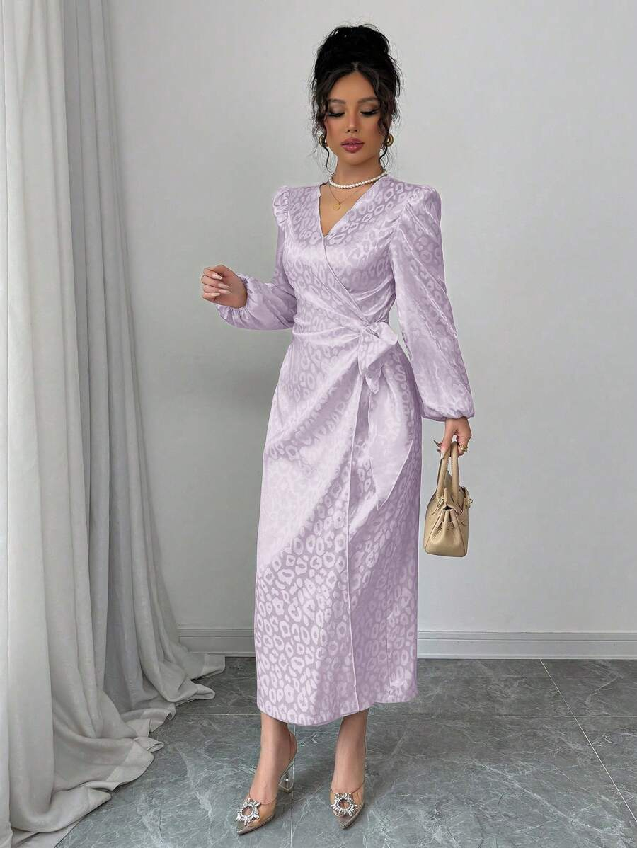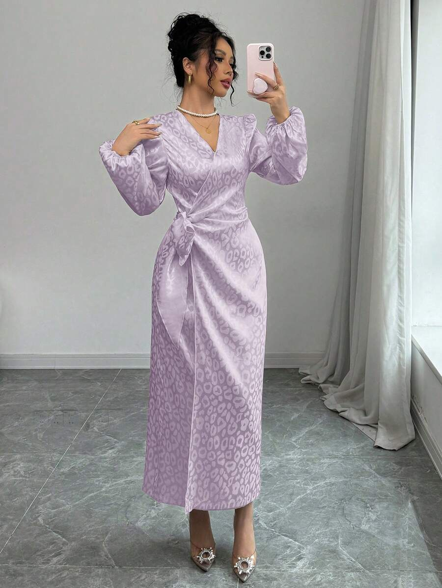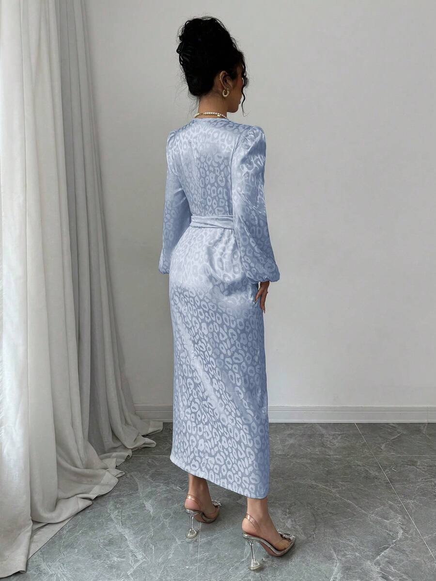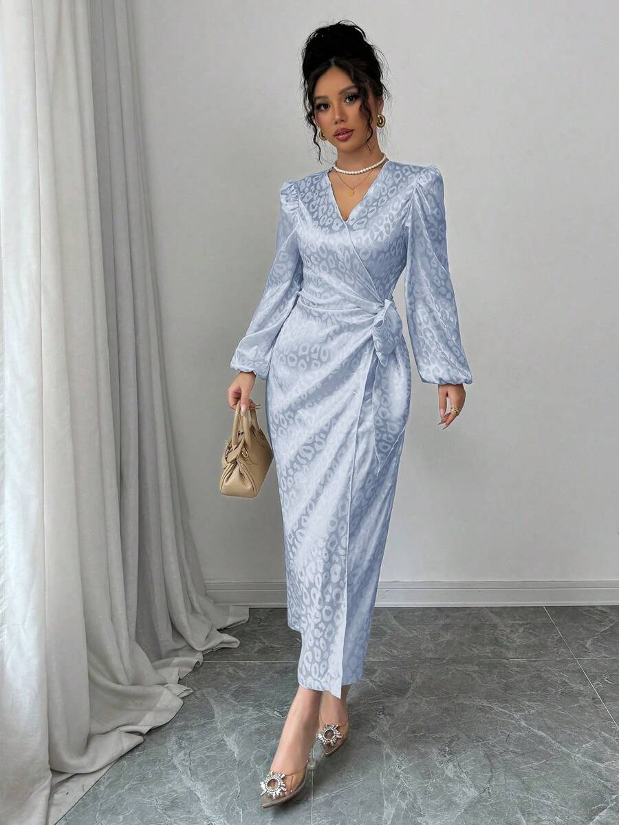 Rafferiza فستان نسائي ضيق الجسم ذو كشكشة في الأكمام ذو فتحة في الرقبة، بطبعة نمر