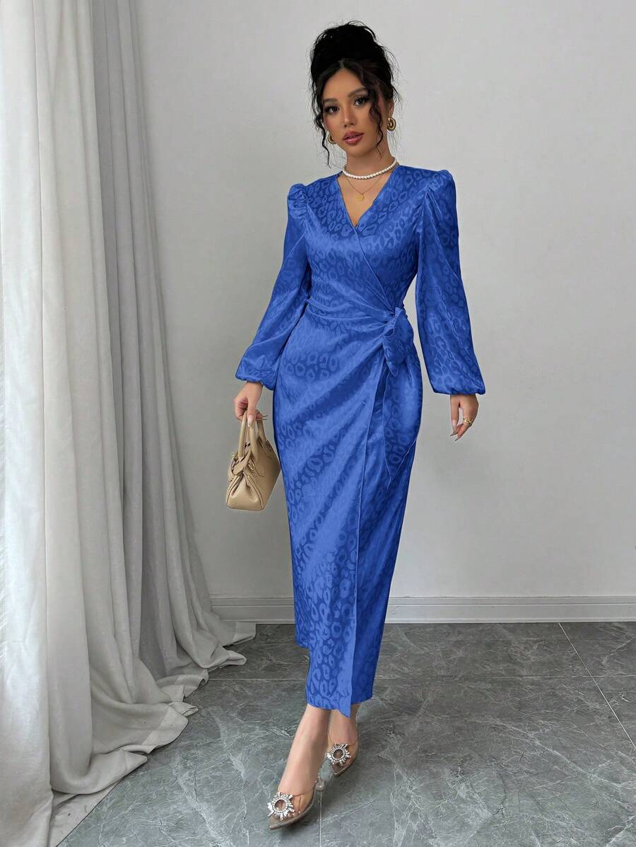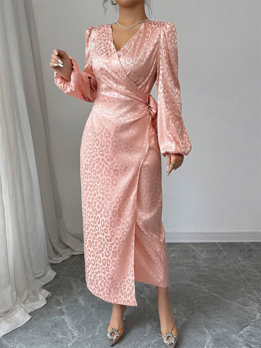Rafferiza فستان نسائي ضيق الجسم ذو كشكشة في الأكمام ذو فتحة في الرقبة، بطبعة نمر 130.00  السعر الأصلي هو: 130.00 .110.50 السعر الحالي هو: 110.50 .ر.س