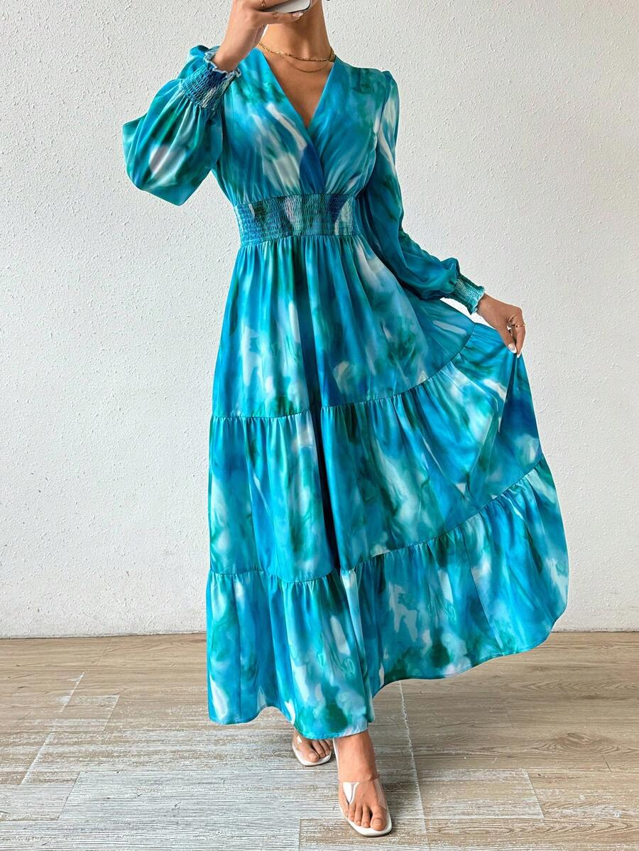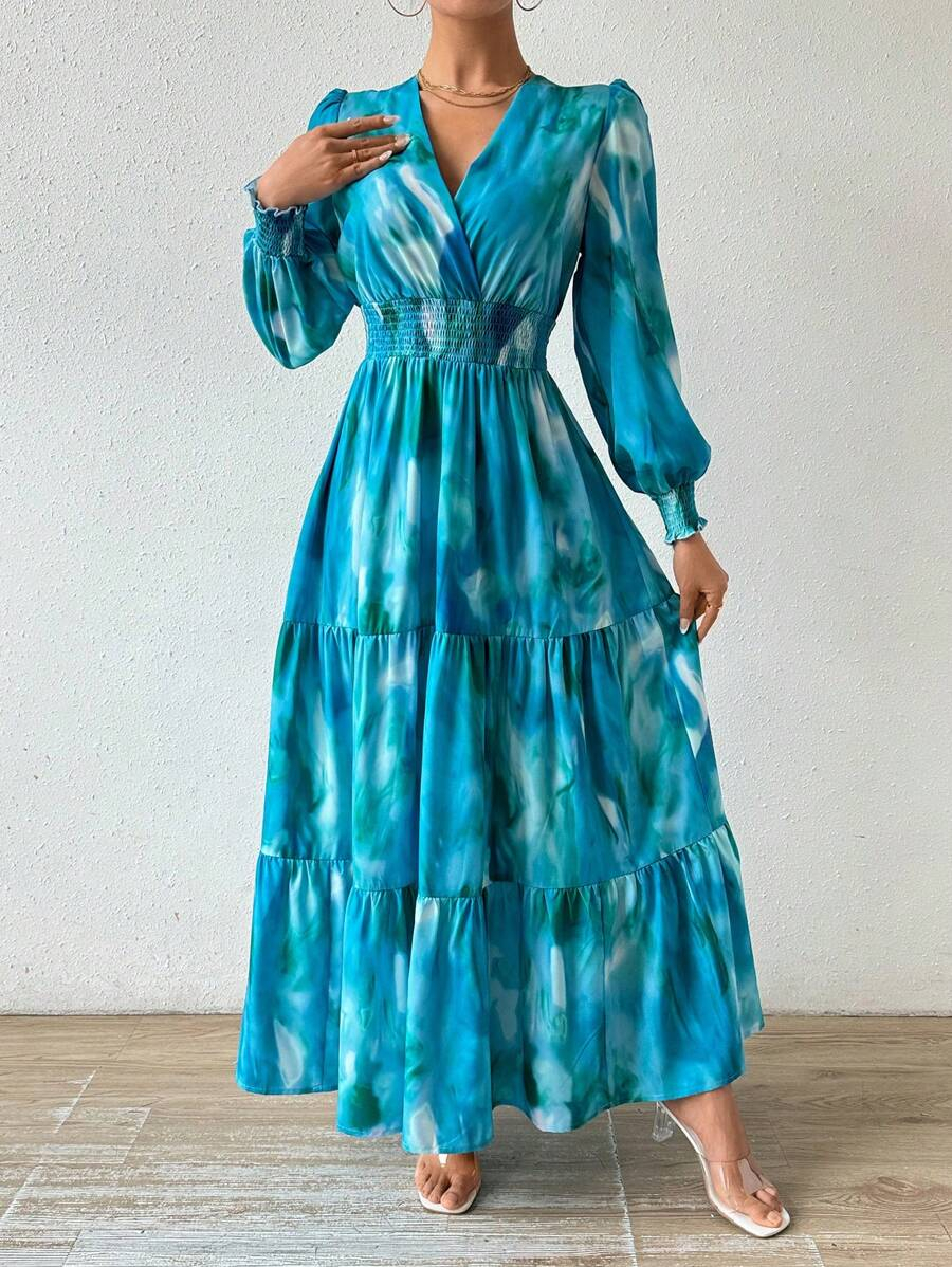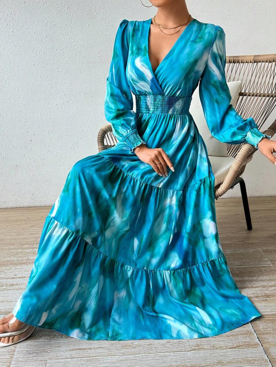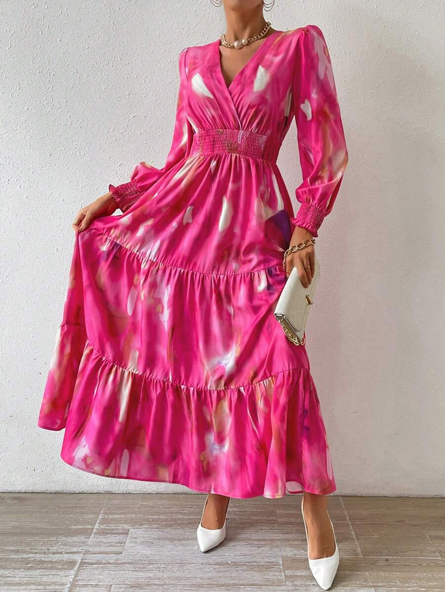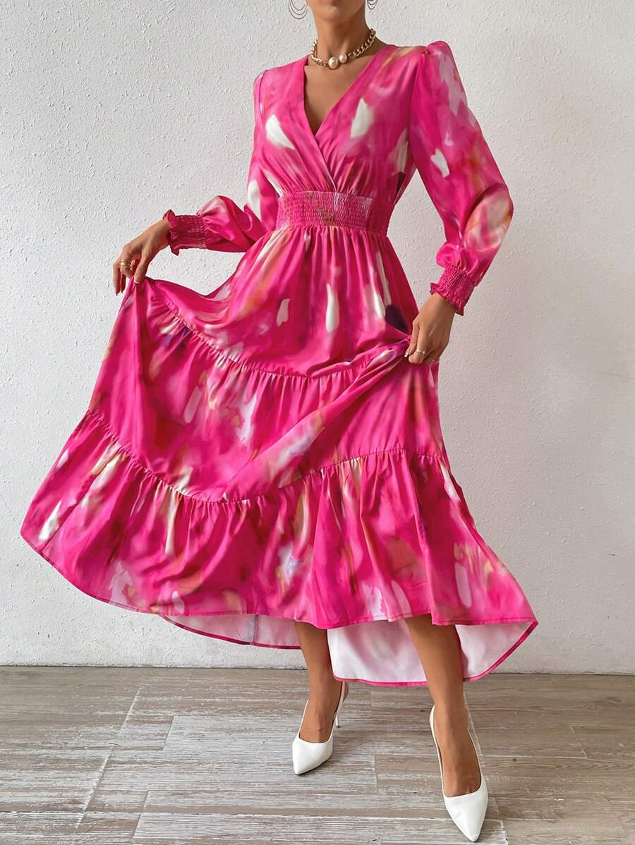 فستان بخصر منكمش وكشكشة في الذيل