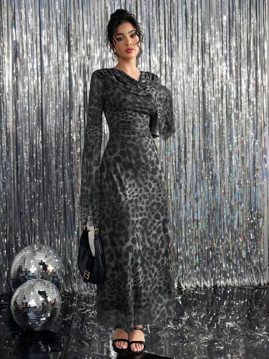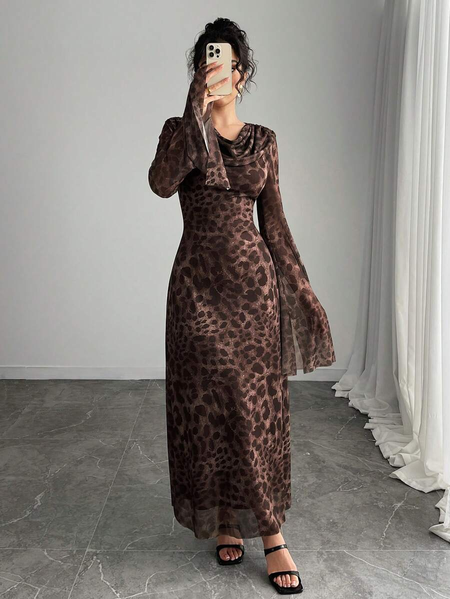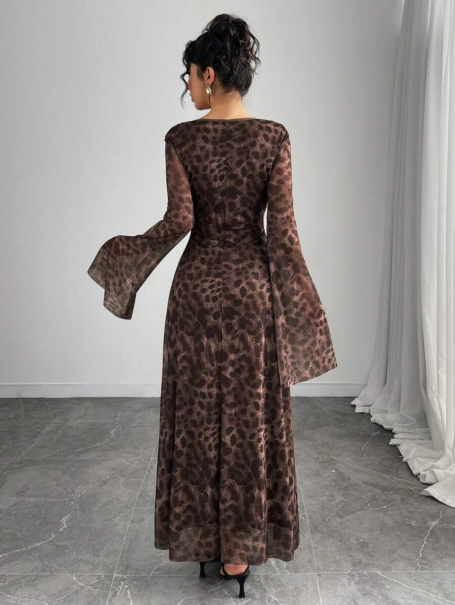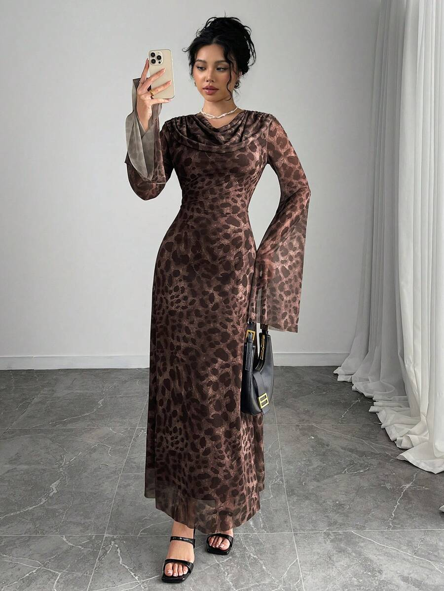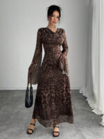 الرئيسية فساتين Rafferiza فستان نسائي ضيق الجسم ذو كشكشة في الأكمام ذو فتحة في الرقبة، بطبعة نمر