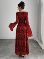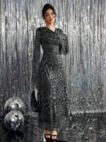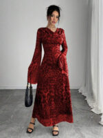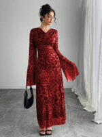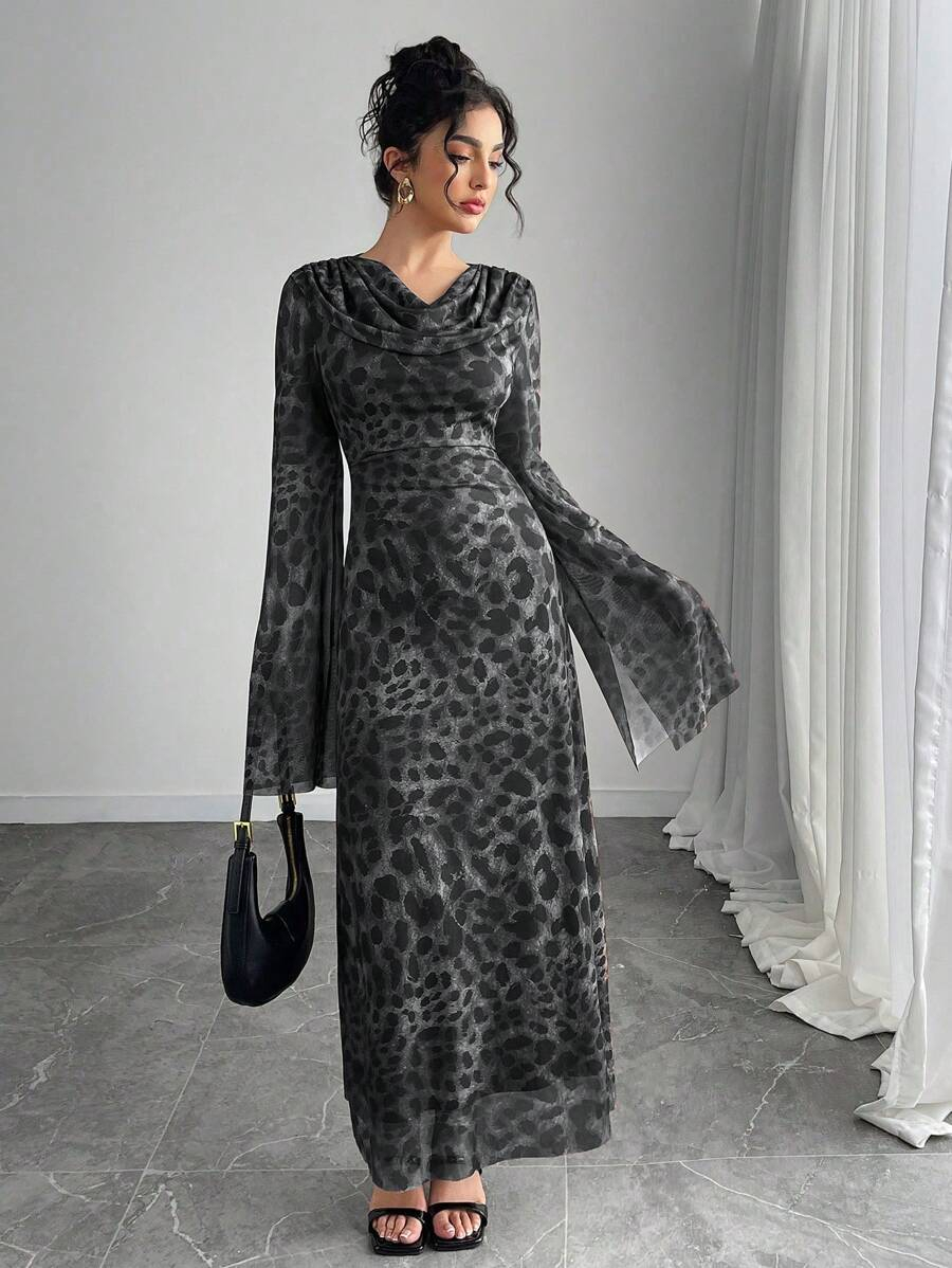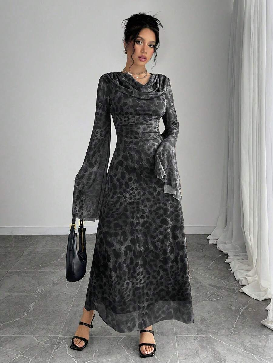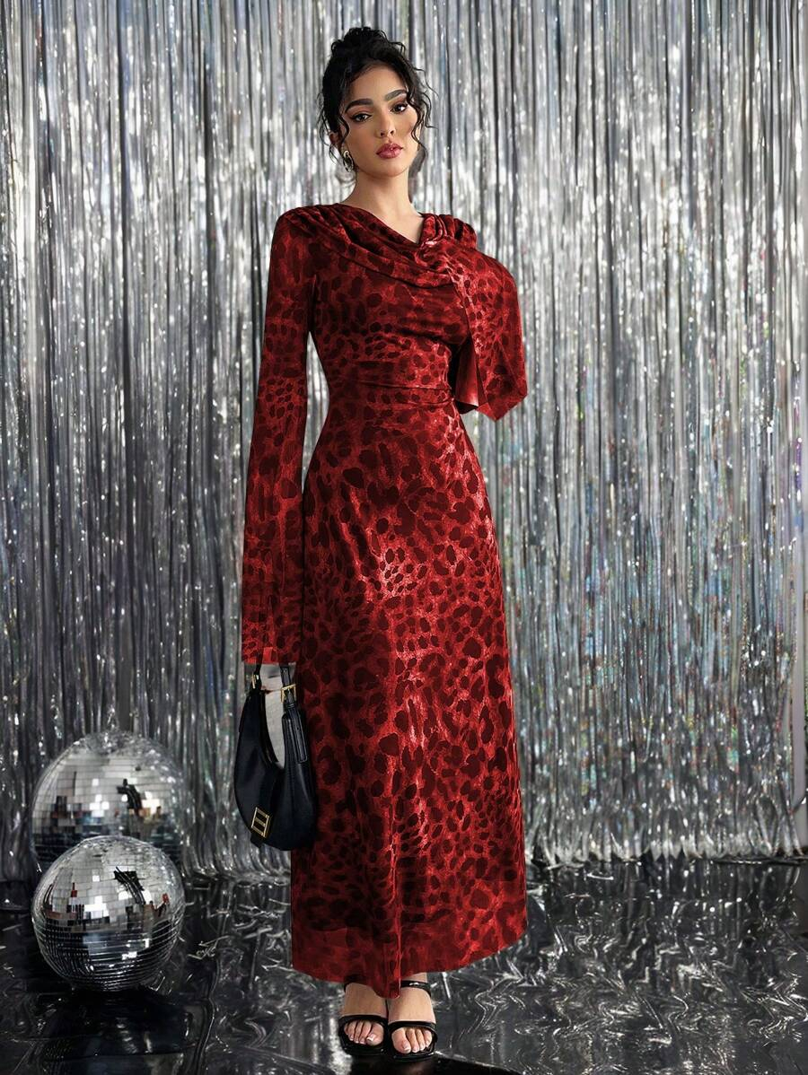 الرئيسية فساتين Rafferiza فستان نسائي ضيق الجسم ذو كشكشة في الأكمام ذو فتحة في الرقبة، بطبعة نمر